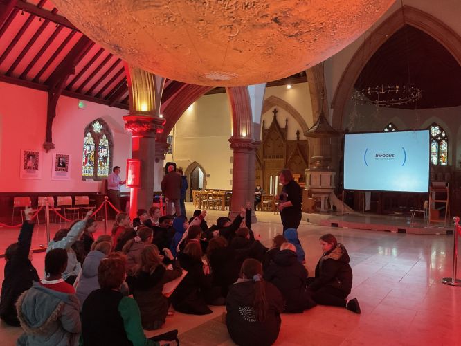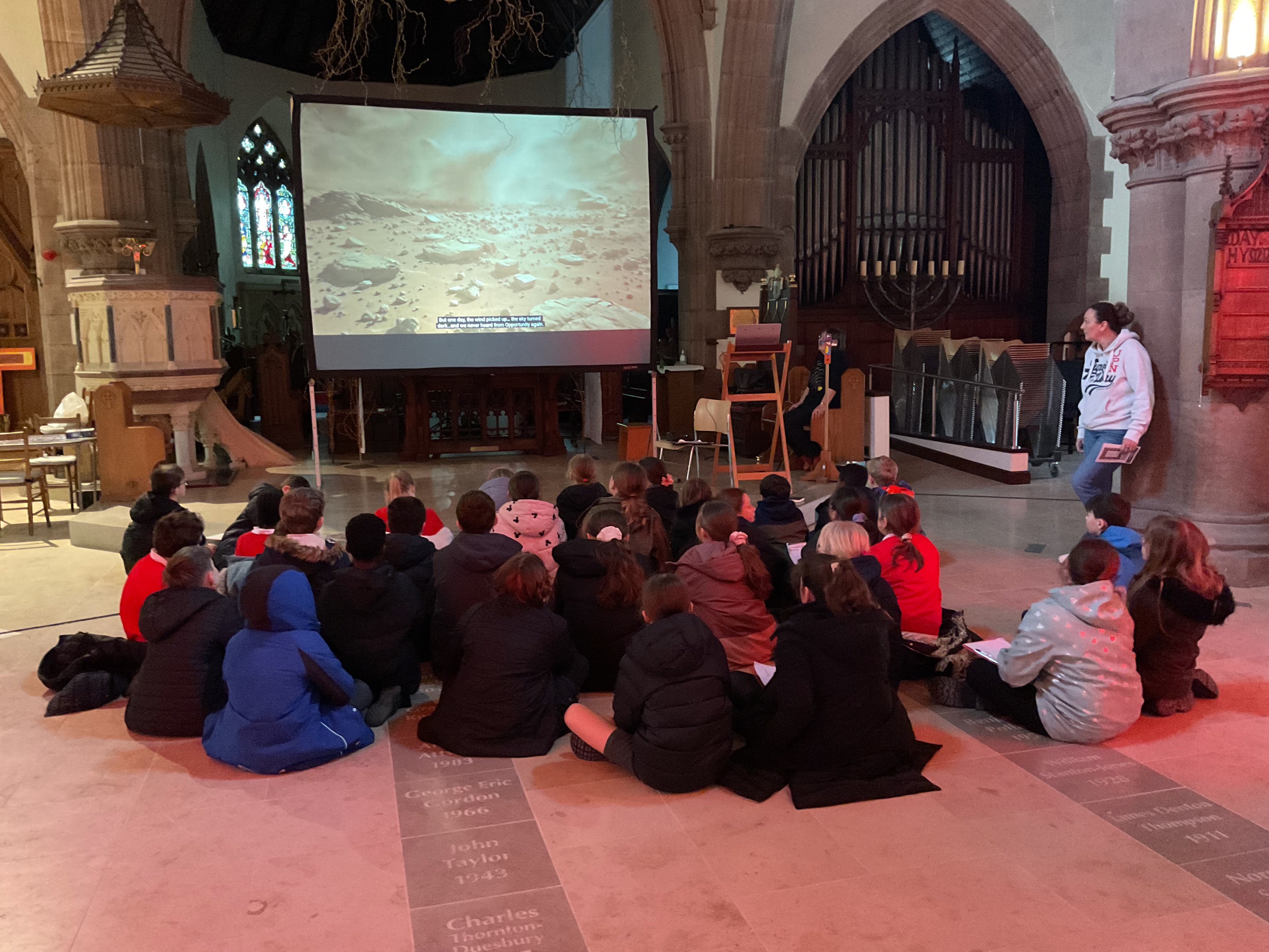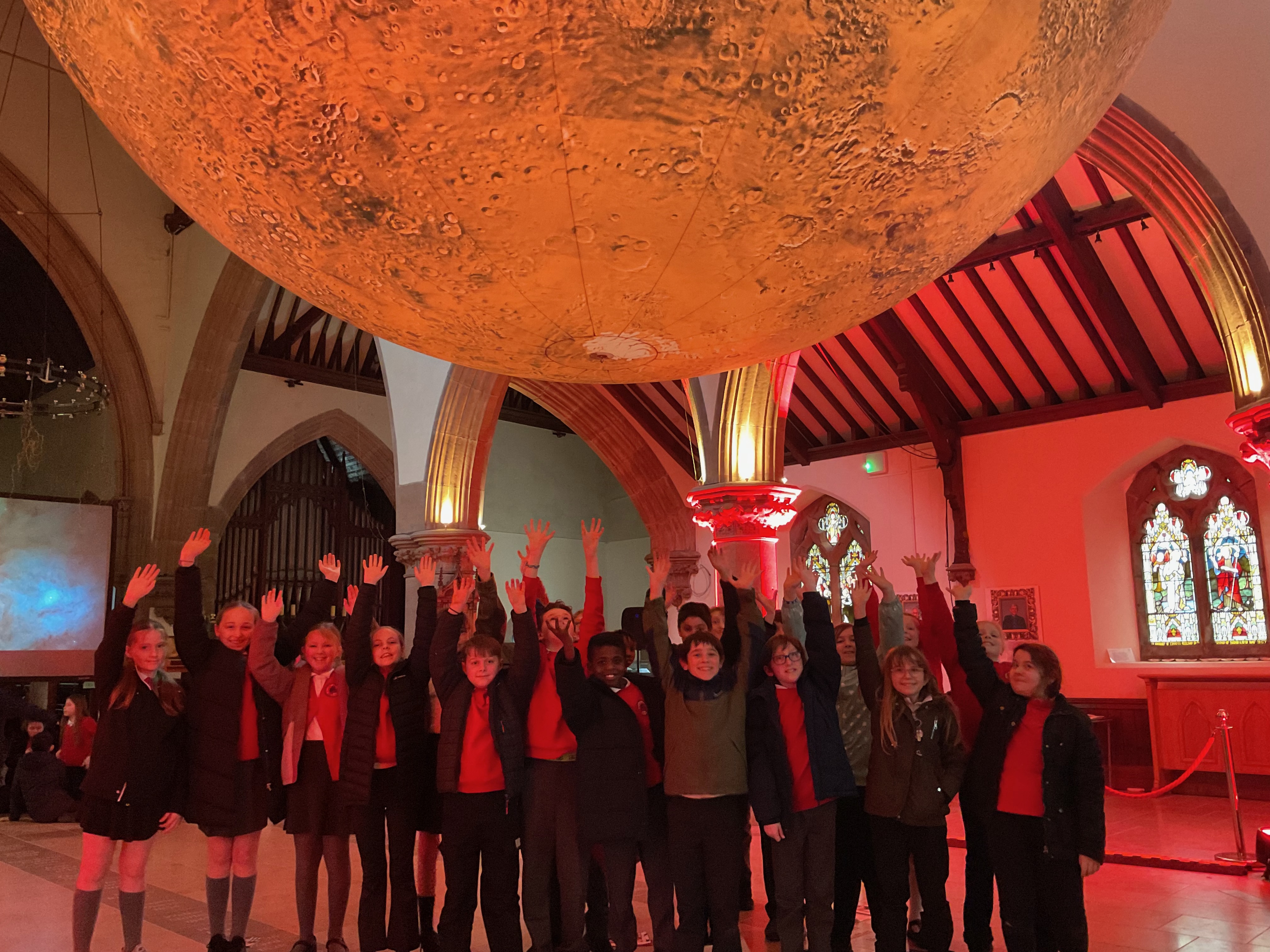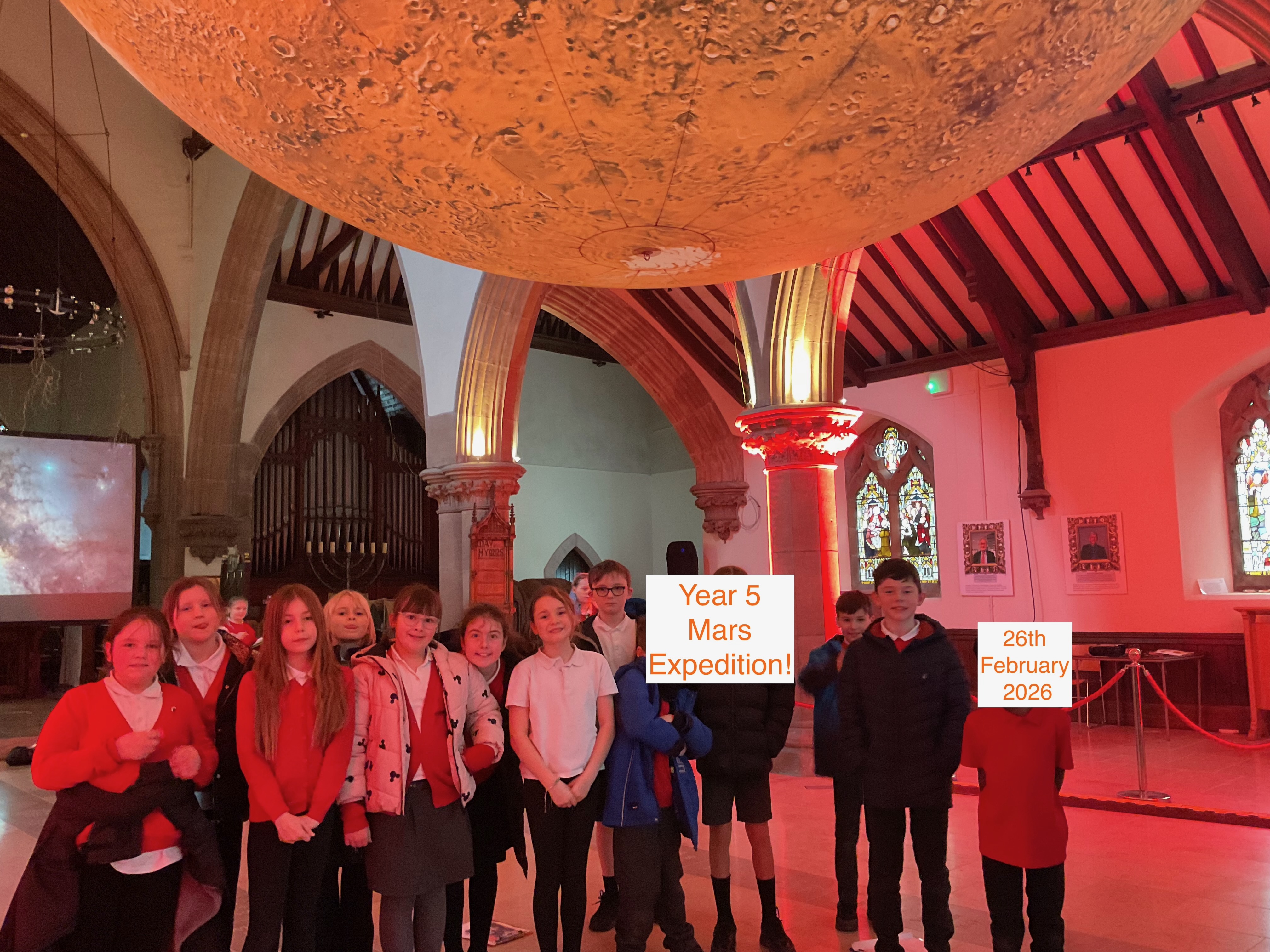 Holly and Oak Classes (Year 5 & 6) went to Mars today - at the Peel Cathedral. It was very interesting seeing the craters and the valleys that cover Mars and learning about those who have had an impact on space knowledge over time. Rosemary, our guide, shared numerous facts and helped the classes locate the Mars Rover, Opportunity and the largest volcano in our galaxy, Olympus Mons. She even pointed out the smiley faced crater - can you spot it in the photos? Thank you to all our parents and grandparents who helped transport and supervise - it was greatly appreciated.